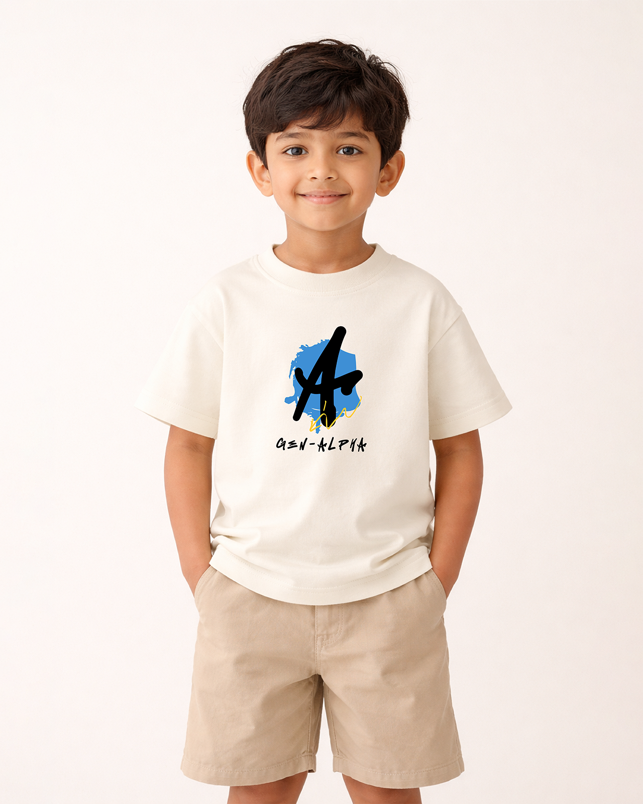 Bold, expressive, and made for the next generation, this Gen-Alpha graphic t-shirt is designed for kids who stand out. Featuring a clean front graphic with a modern paint-stroke logo and a statement graffiti-style back print