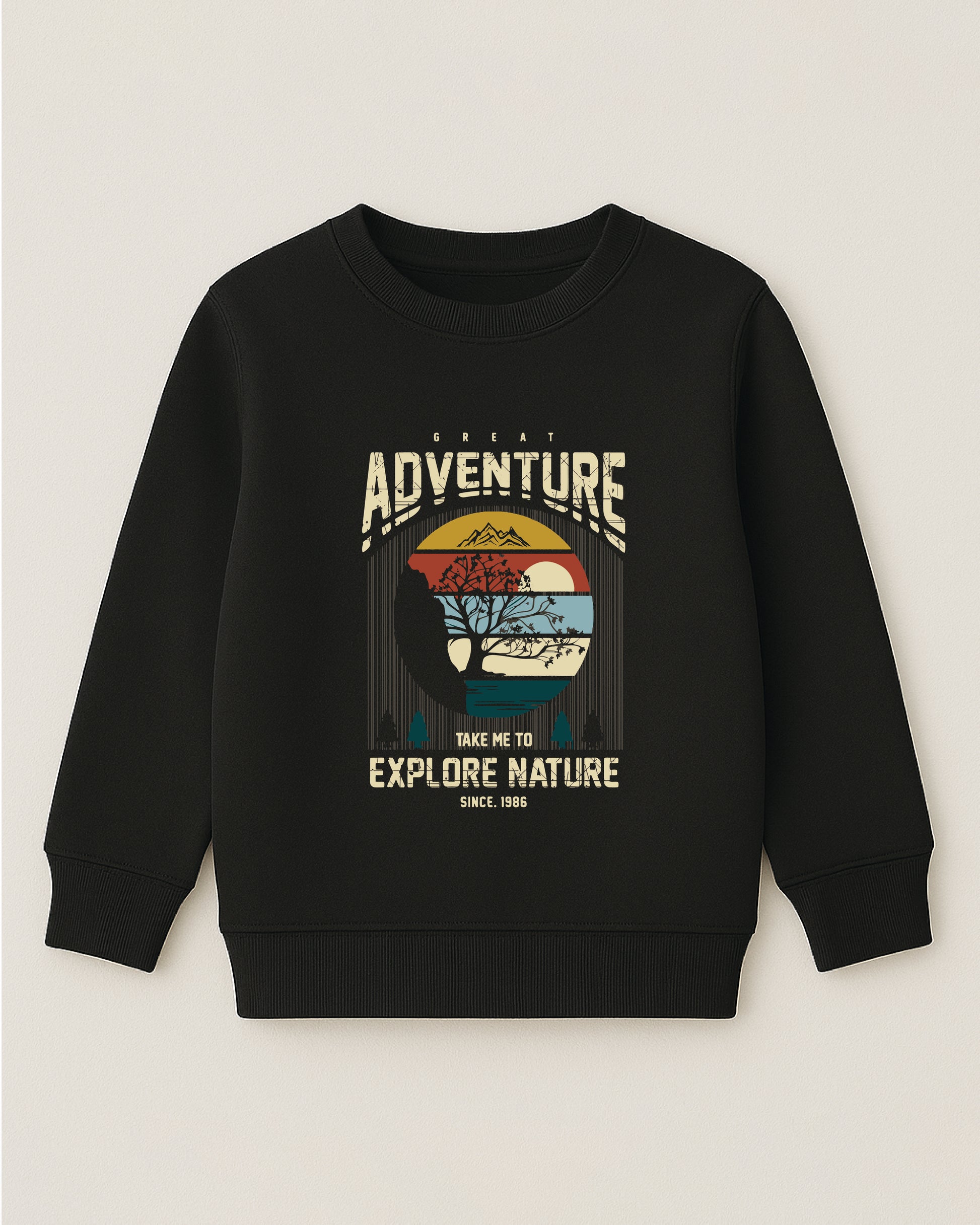 For the little explorer who’s always ready for the next big adventure! This black sweatshirt features a bold “Great Adventure” print that celebrates curiosity and the love of nature.