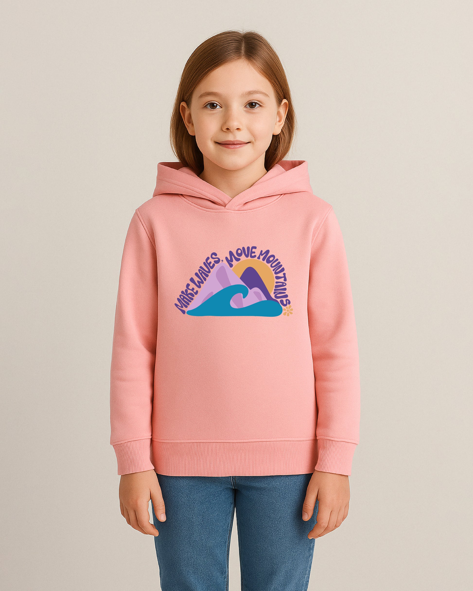 Let her shine in a hoodie that’s all about confidence, creativity, and color. Our “Make Waves, Move Mountains” hoodie brings a bright, positive message to life with a playful design that inspires little dreamers to be bold and unstoppable.