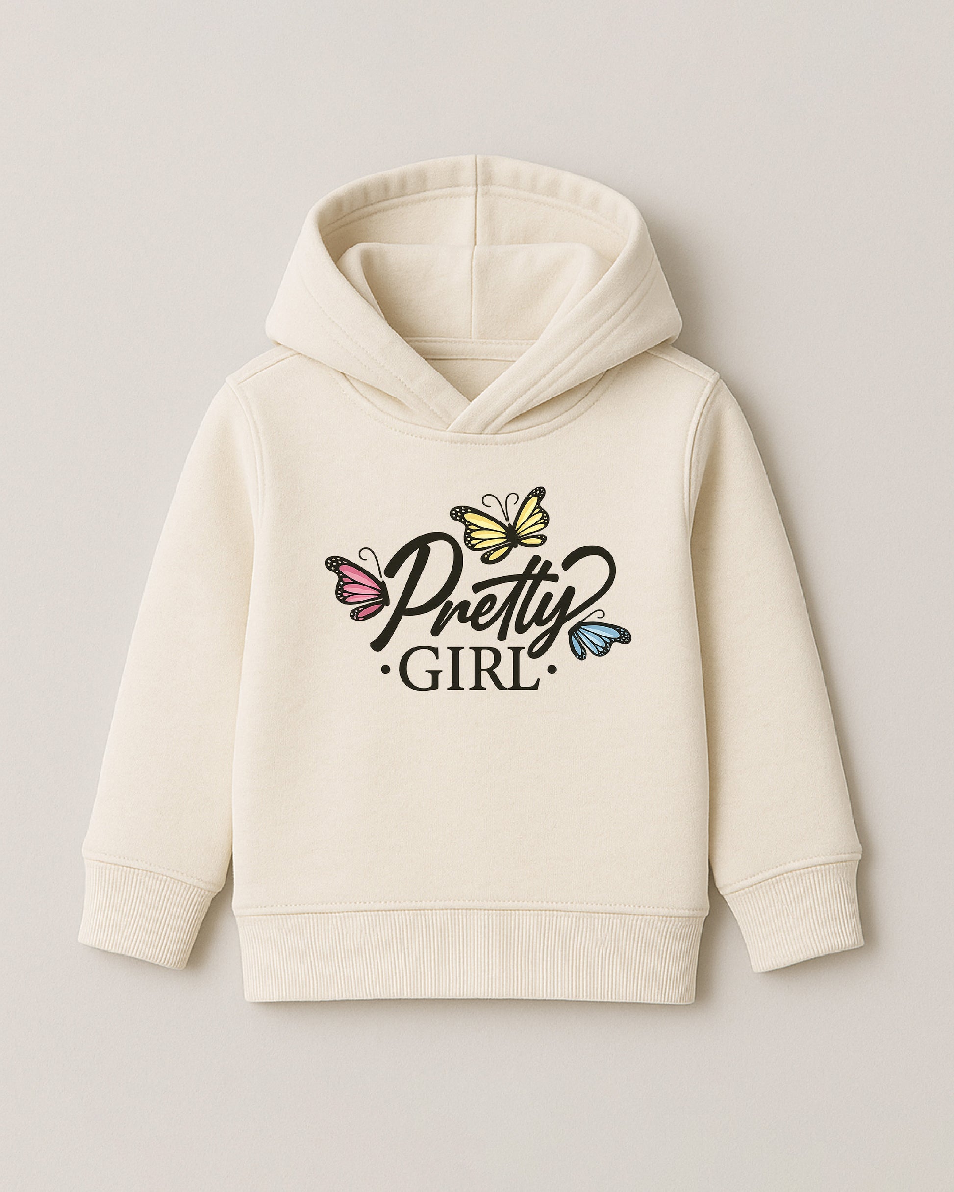 Soft, sweet, and full of charm our Pretty Girl hoodie is made for the little ones who light up every room they walk into! Crafted from ultra soft cotton-blend fleece in a creamy neutral tone, this hoodie features a graceful “Pretty Girl” script surrounded by pastel butterflies, adding a touch of color and magic. It’s cozy enough for chilly days and stylish enough for any casual outing.