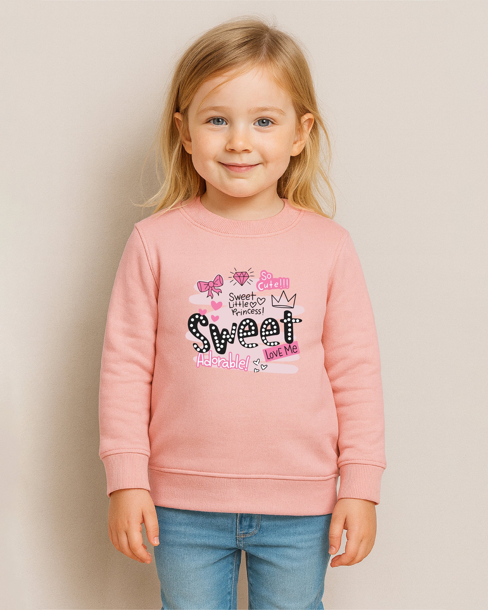 Let your little princess shine in this adorable “Sweet” sweatshirt — the perfect blend of cuteness, comfort, and playful style! Designed for girls who love bows, sparkles, and all things pretty.